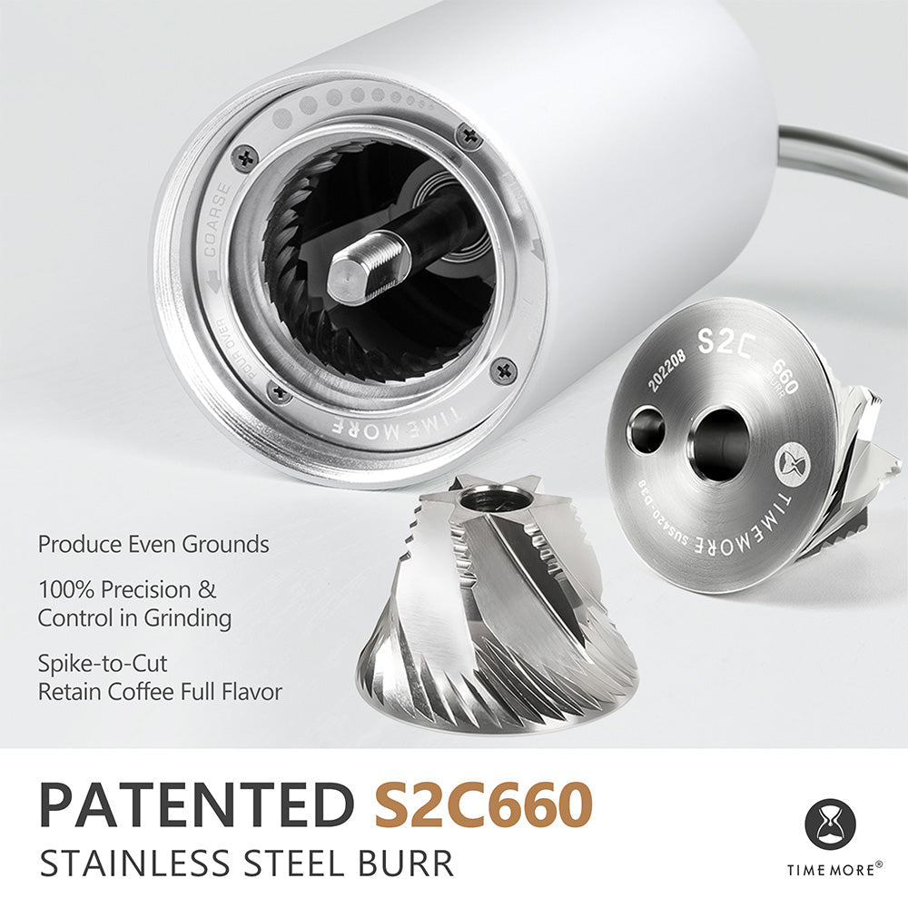 - UPGRADED VERSION OF C2: Share the same size but upgraded with new S2C steel burrs adopted from the Chestnut X in a smaller 38mm size, 2022 new released TIMEMORE CHESTNUT C3 has better cutting performance, ensuring your coffee beans taste their best by consistently and swiftly ground.